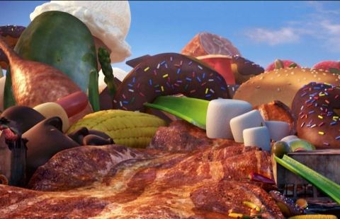 Провизия есть для всех и в огромном количестве, поскольку еда, в прямом смысле, просто падает с неба. Флинт изобрёл установку и с неба могут падать фрикадельки. На этом мужнина не остановился. Через некоторое время появились желейные холмы, настоящий шедевр как для жителей города, так и для его гостей. Вот только не всё так идеально. Периодично дожди из фрикаделек сменяются на ураган из спагетти. Главным героям необходимо разобраться во всём происходящем. А проблема в том, что в машине Локвуда есть одна неисправность и если её не устранить, то может случиться самая настоящая трагедия...