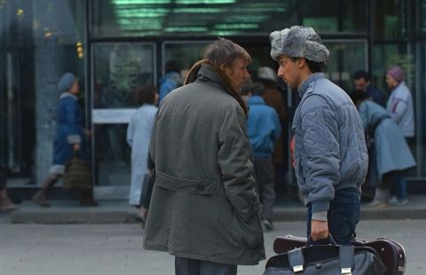 По дороге он чисто случайно познакомился с Гедеваном Алексидзе, студентом, “вооруженным” скрипкой. Молодой человек обратил внимание мужчины на загадочного босоногого субъекта, заявлявшего о своем внеземном происхождении. Странный тип протянул им некий портативный аппарат, который в мгновение ока и перенес случайных знакомых в жаркую пустыню.